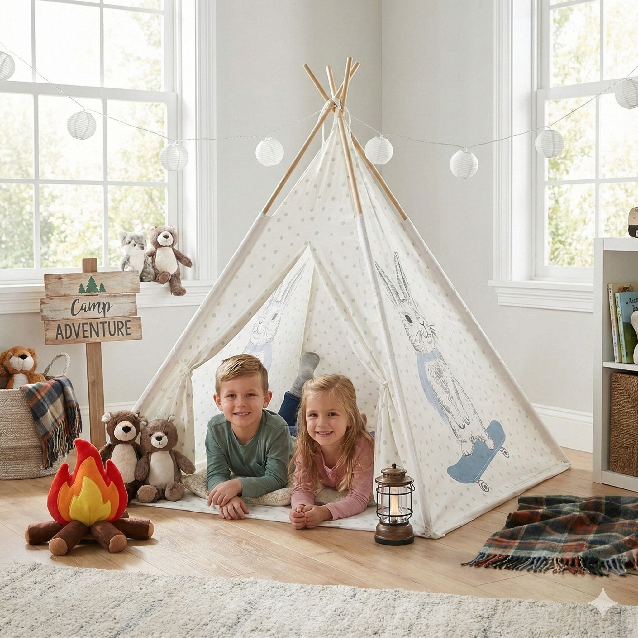 Introducing the perfect addition to your child's playtime - our Rabbit on a skate board Teepee Tent!